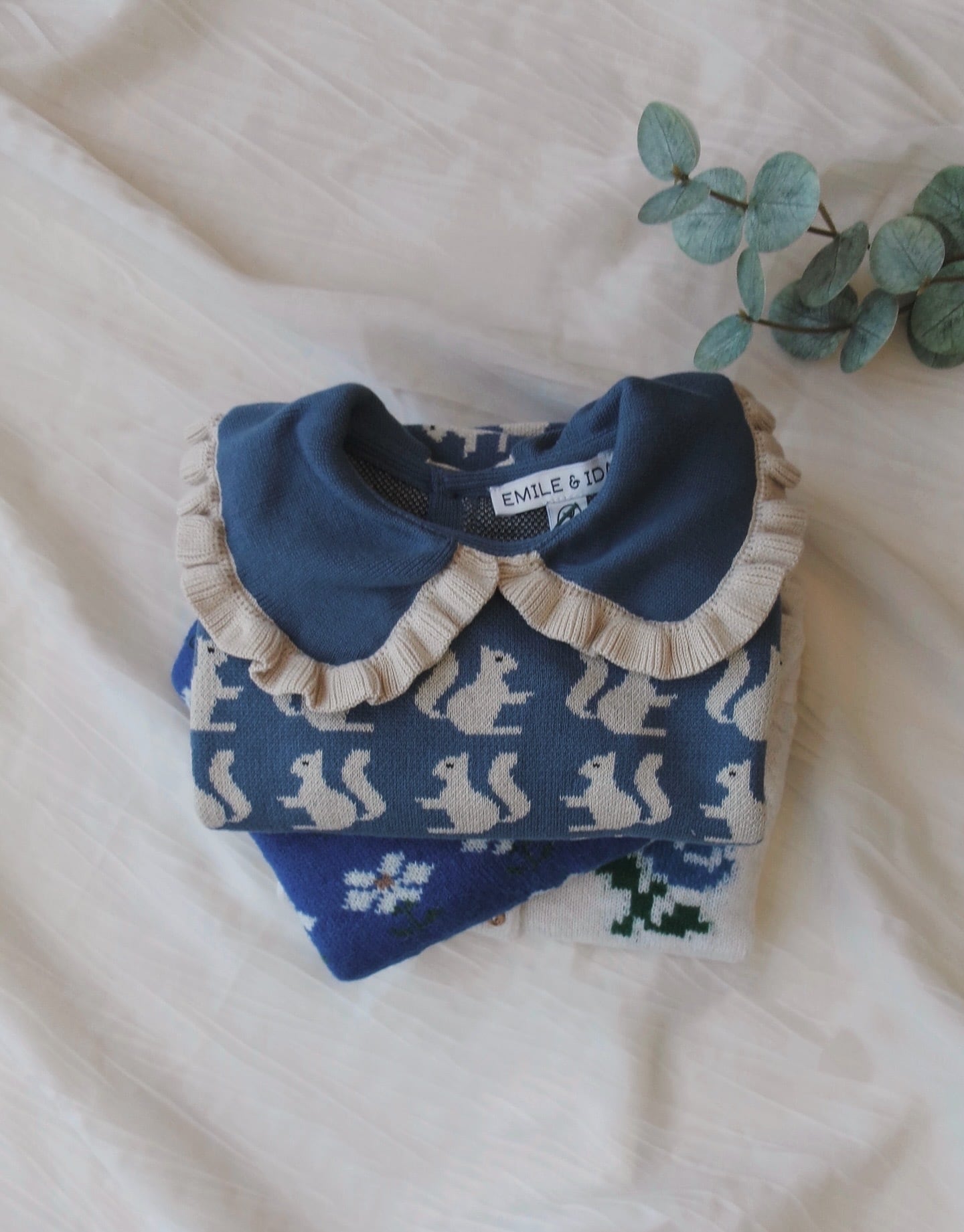 size 2A 3A 4A【Emile et Ida】Blue organic cotton squirrel jacquard sweater