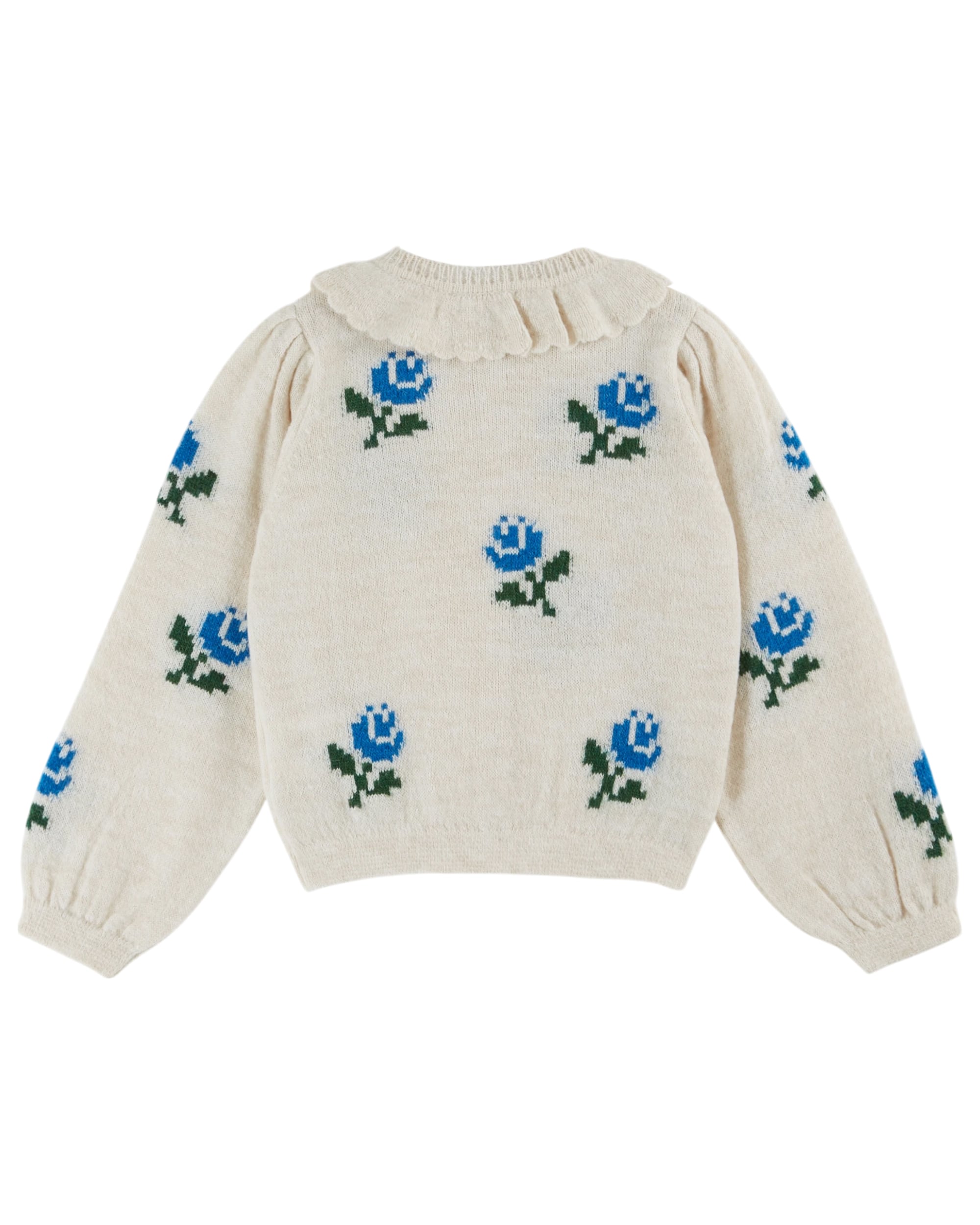 大きなブルーローズが目を惹く、エクリュカラーのモヘアカーディガン。