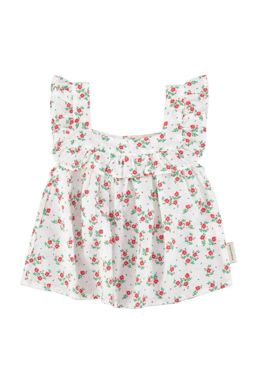 【piupiuchick】SLEEVELESS BLOUSE/ECRU RED FLOWERS ALLOVER