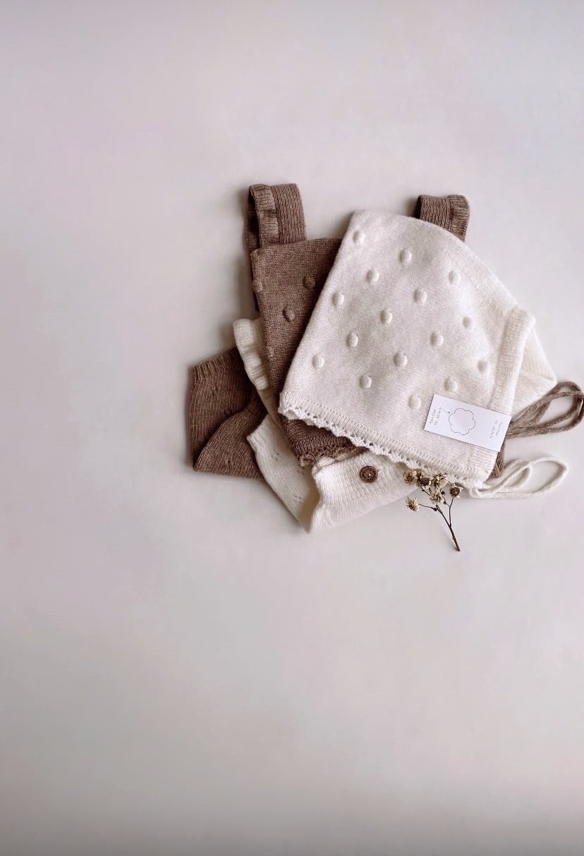 柔らかくふわふわなメリノウールで編まれた、温かみのあるボンネット